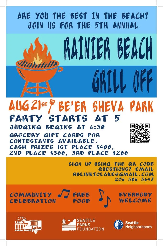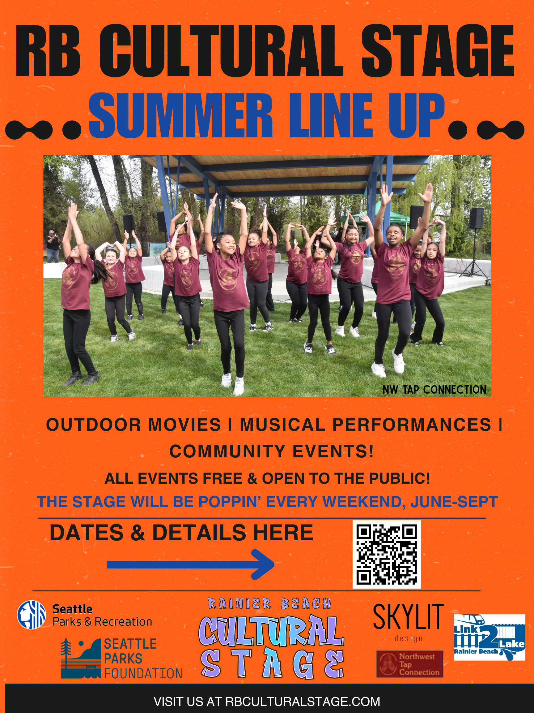 The Cultural Stage at Be’er Sheva suffered a loss to the awning structure in late November 2024 when a tree fell on it during the “Bomb Cyclone.” We have applied for grants to fund a new structure, and are crossing our fingers it will be repaired by Summer 2026. We are still excited to offer a full line up of events Summer 2025, with generous support from Seattle Parks & Recreation.
